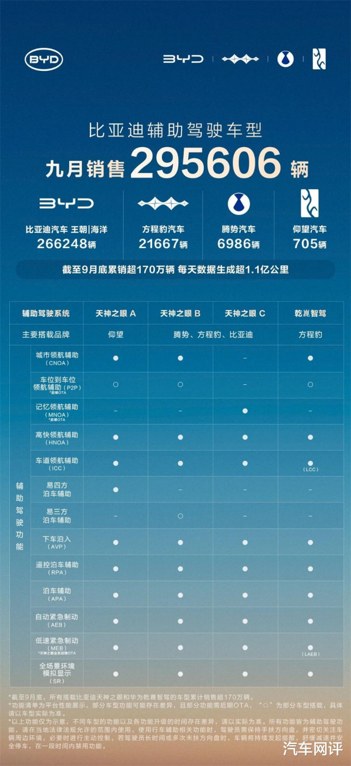 而另一组数据显示,比亚迪9月搭载辅助驾驶的车型单月销售达295,606辆,截至9月底,搭载辅助驾驶车型的年度累计销量已突破170万辆大关。其中,比亚迪王朝与海洋系列作为基盘,贡献了266,248辆,而定位高端的方程豹、腾势乃至仰望品牌,也分别实现了21,667辆、6,986辆和705辆的销量,这一系列数字共同勾勒出了一幅中国智能汽车产业加速演进的新图景。