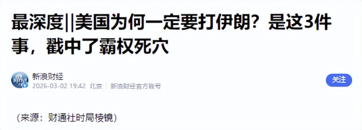 伊朗就是美国围堵策略的试验场,针对伊朗的整套打压手段,未来会被直接用于中国。伊朗倒下,美国就会把更多军事与外交资源投入印太,中国外部环境会显著恶化,发展空间会被严重挤压。