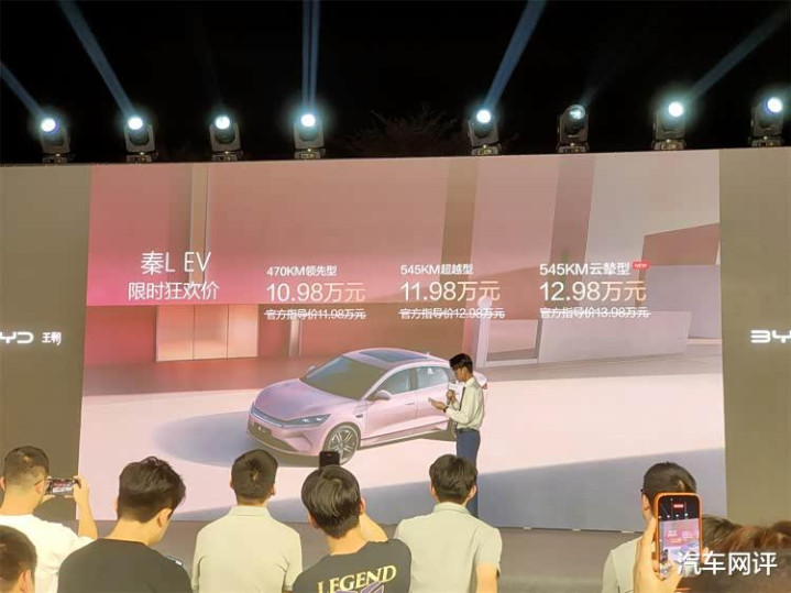 10月17日,比亚迪举行了第二代秦PLUS、秦L EV上新加推发布会广州站活动,同时公布了两款车型的售价。其中,第二代秦PLUS DM-i新增128KM进取型,官方指导价为7.98万元,第二代秦PLUS EV新增420KM进取型和510KM进取型,官方指导价分别为8.98万元和9.98万元,秦L EV限时狂欢节则为10.98-12.98万元,其中545KM云辇型为新增的版型。