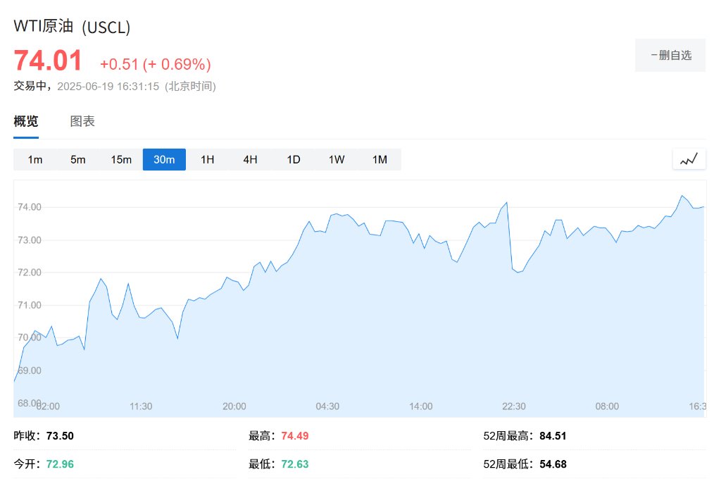 美、布两油日内涨幅达0.5%。